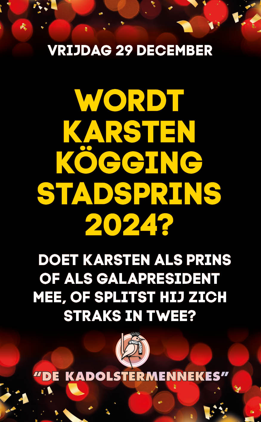 WORDT KARSTEN KÖGGING STADSPRINS 2024? DOET KARSTEN ALS PRINS OF ALS GALAPRESIDENT MEE, OF SPLITST HIJ ZICH STRAKS IN TWEE?