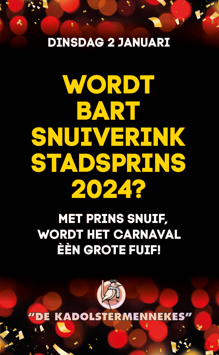 WORDT BART SNUIVERINK STADSPRINS 2024? MET PRINS SNUIF, WORDT HET CARNAVAL ÉÉN GROTE FUIF!